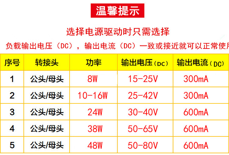 New old models alternate appearance labels with different mind to take care of 8W300ma mother head 10-16W300ma female head 24W600ma female head 38W600ma female head 42 -