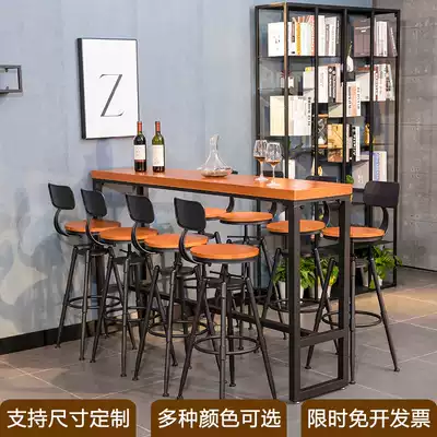Solid wood Wrought iron bar table table and chair combination Long table Household lifting chair high foot table Bar table Modern and simple