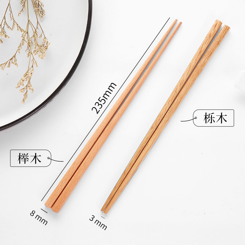Chopsticks Household Solid Wood Natural Quercus Wood Handmade Mid Day Type Non-slip Wood Chopsticks Family Suit 10 Double Fast Sub