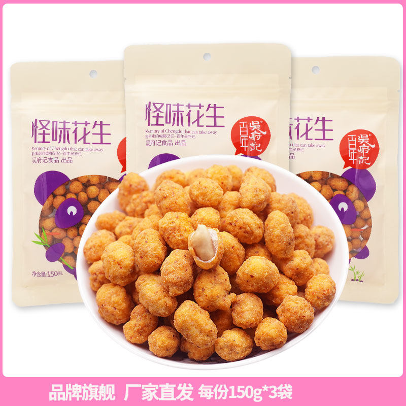 Centuries-old Wu Fu notes Crisp and bizarre multiflavor peanut rice 150gx3 bag small packaging nut Chengdu Teaters casual snacks-Taobao