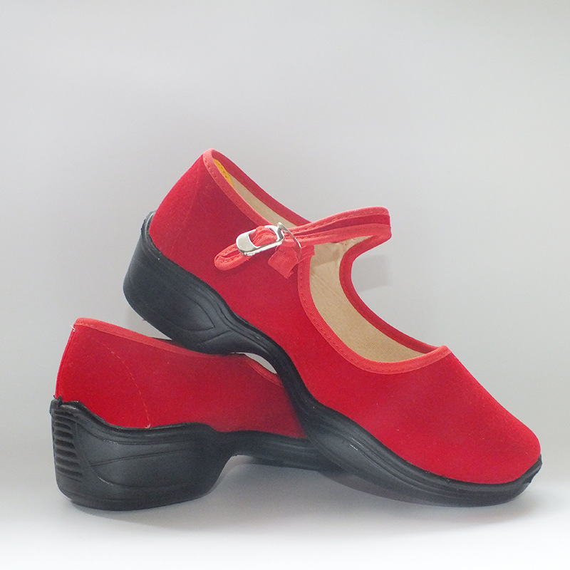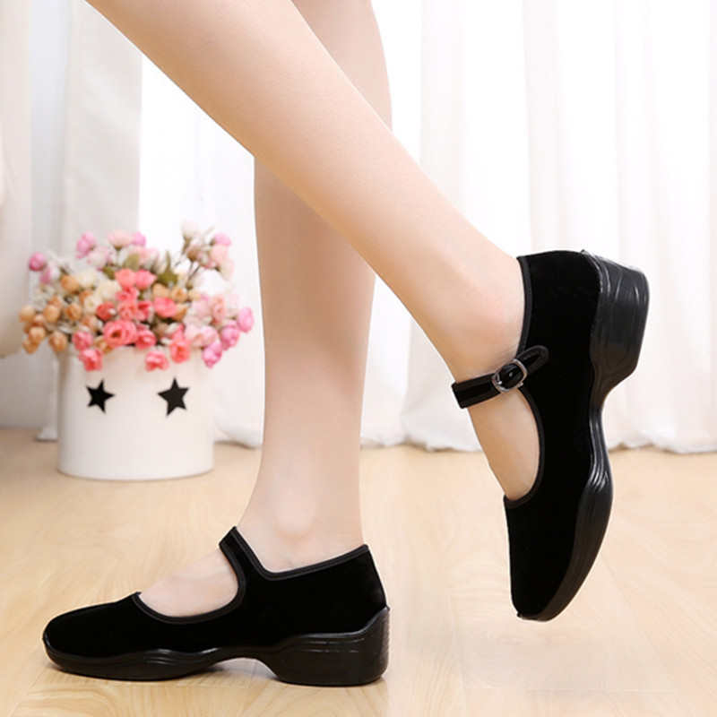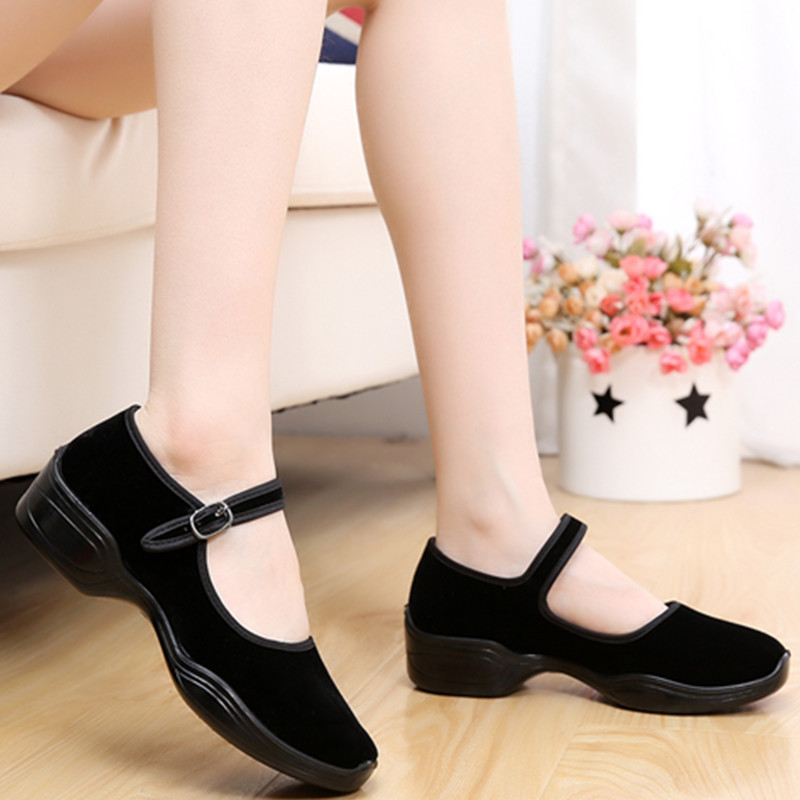 Old Beijing cloth shoes women's spring work shoes women's black work non-slip breathable comfortable mid-heel thick-soled square dance shoes