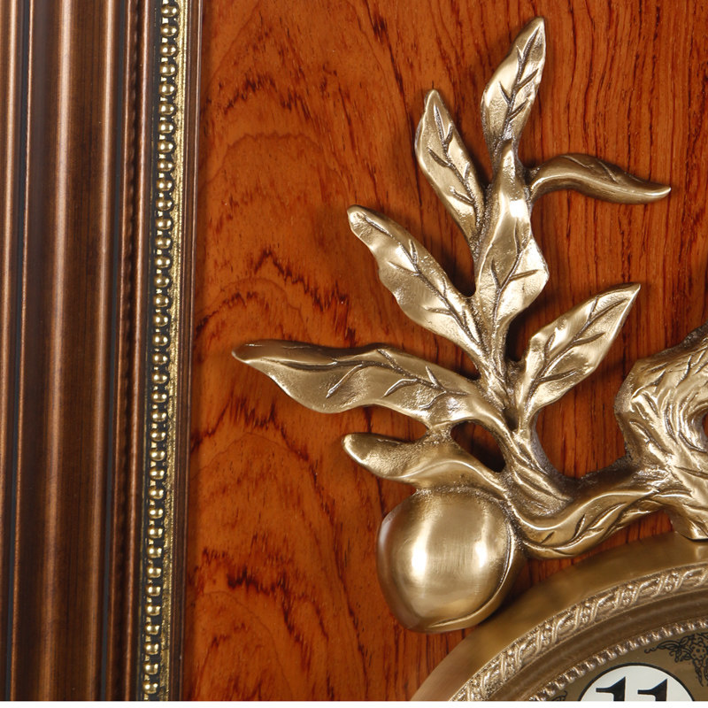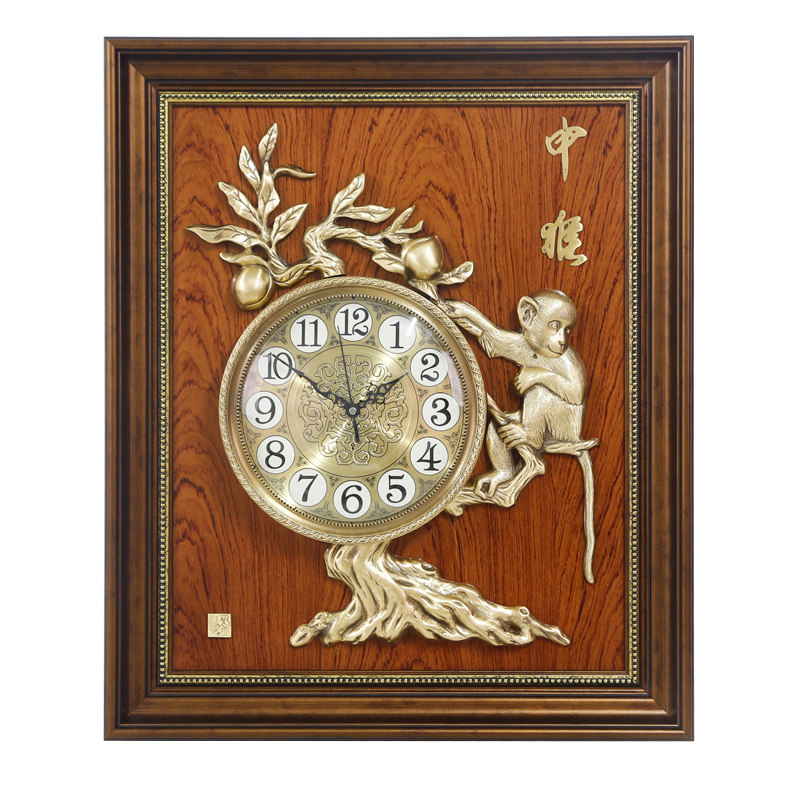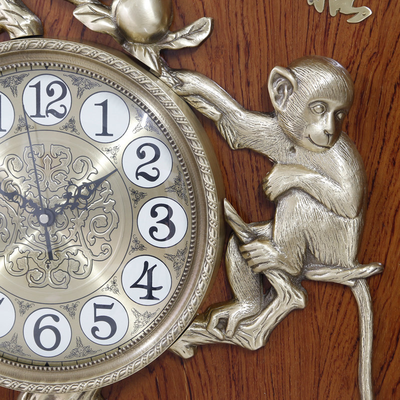 TQJ large Chinese pure copper wall clock monkey peach clock watch Wooden hanging watch living room bedroom silent wall clock