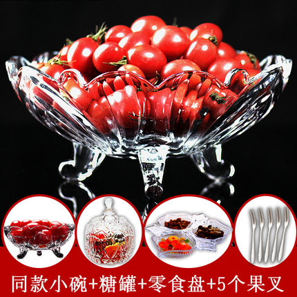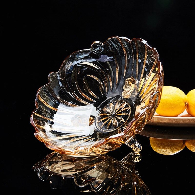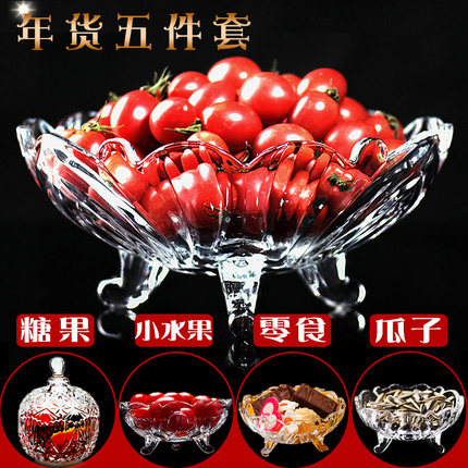 European style large crystal glass fruit plate modern living room coffee table creative candy plate household dry fruit plate fruit plate