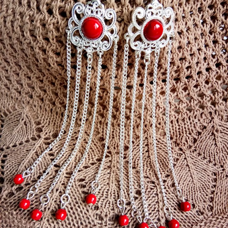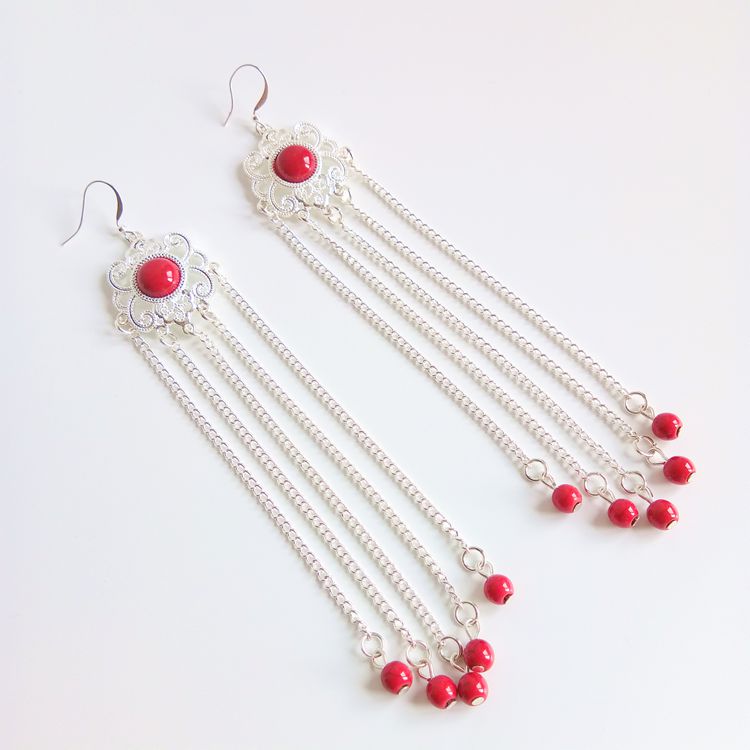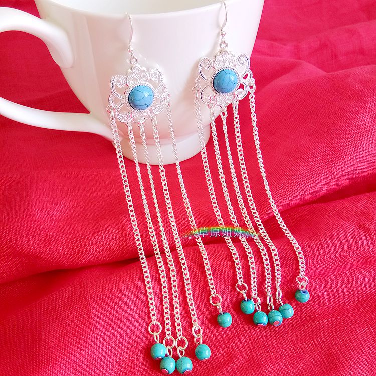 Mongolian Female Style Earrings Silver Plated Long Version Streaming Suear Pendant New Temperament Pendant Fashion Super Fairy Accessories Tide Ornaments