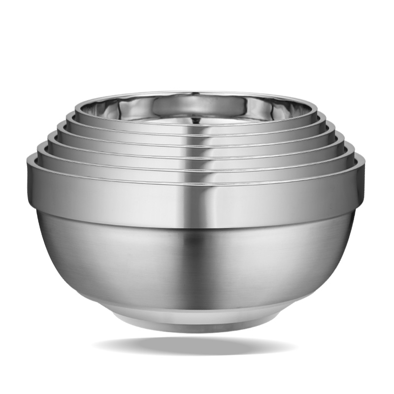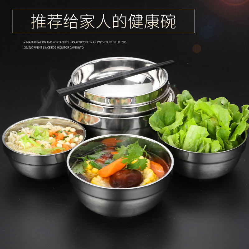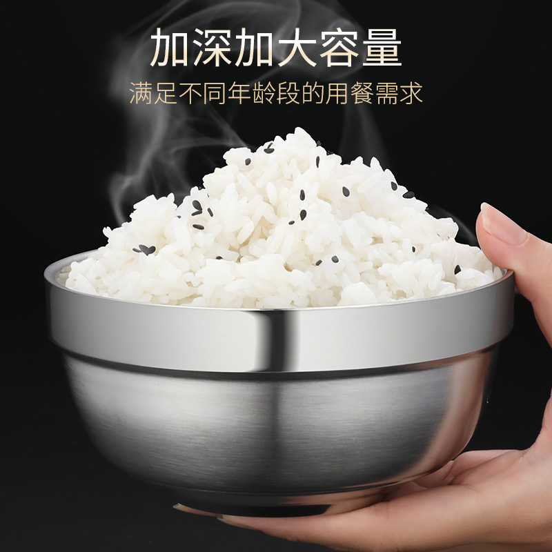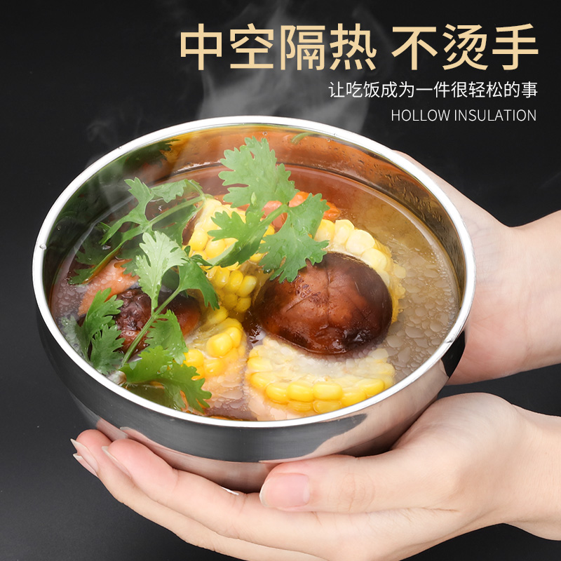 Stainless Steel Bowl Home Double Layer Anti-Burn Soup Bowl Insulation Iron Bowl Children Anti-Fall Eating Rice Bowls Adults Large Dining Bowl
