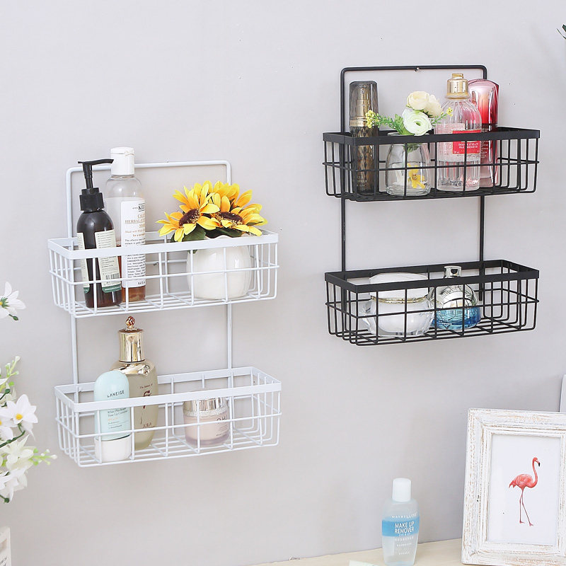 ins wrought iron wall wall storage basket dormitory wall rack non-punching powder room bathroom basket