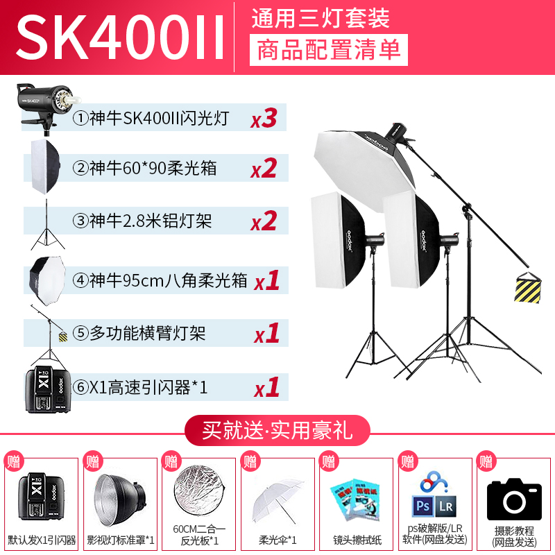 Shen Niu SK400ii second generation 400W photography light three-light set fill light photo flash Photography film and television light Indoor portrait studio photo fill light professional set