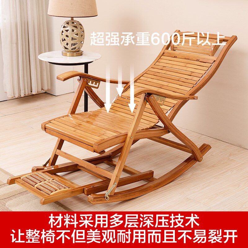 Deckchair bamboo rocking chair Adult folding chair Home Sleeping Chair Cool Chair for the Elderly Afternoon Hugh Solid Wood Backrest Rocking Chair