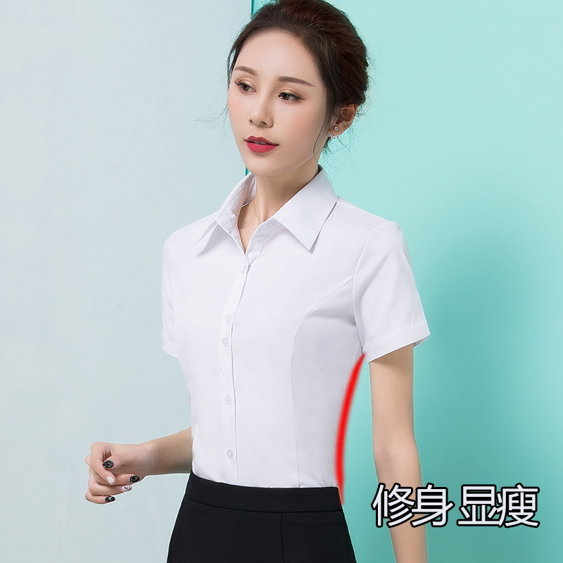Short-sleeved white shirt women's professional work clothes loose summer dress tooling suit large size short-sleeved women's ol shirt