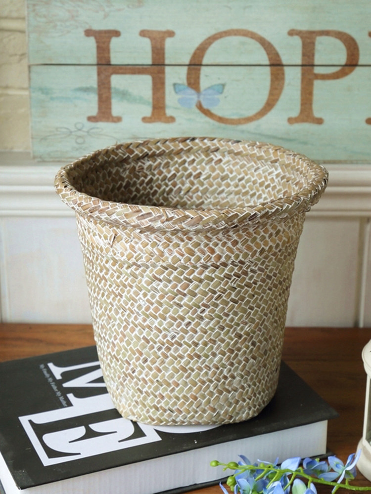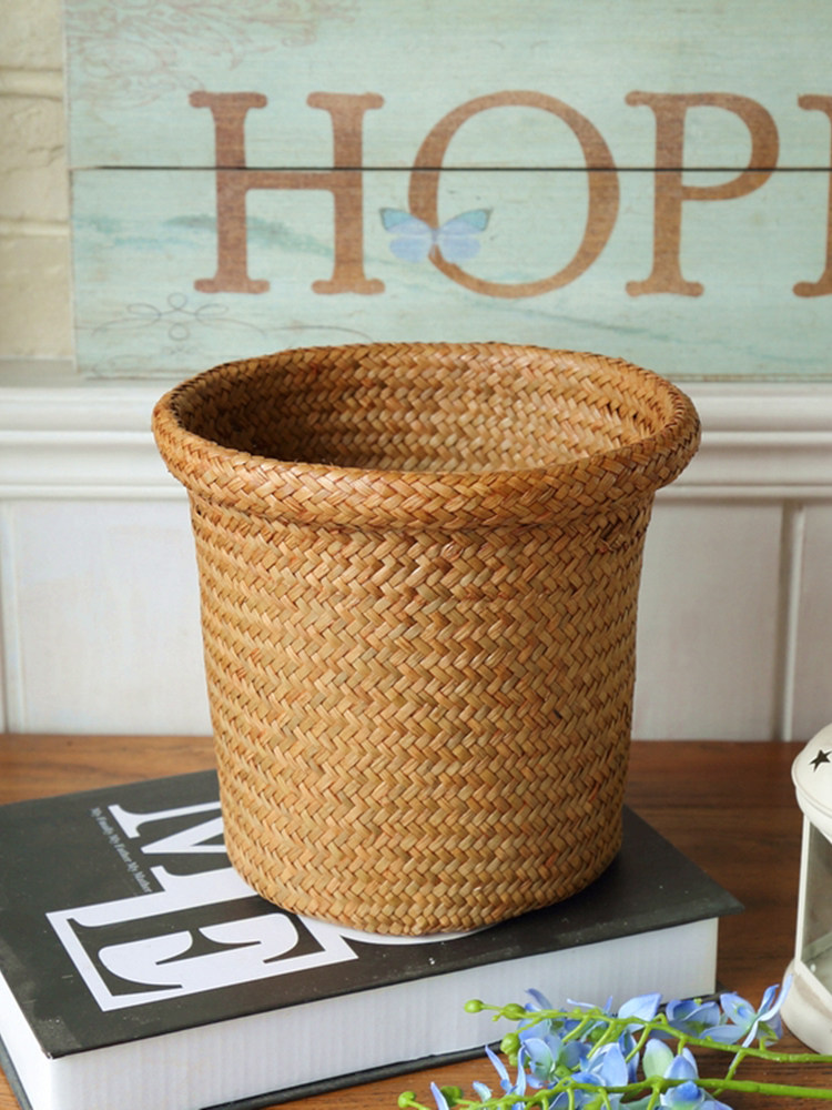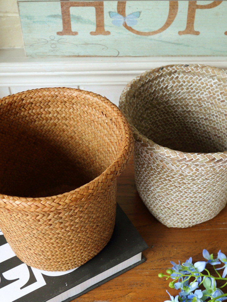 Grass woven flower bucket flower pot flower basket flower device natural handicraft woven storage basket snack induction desktop decoration decoration
