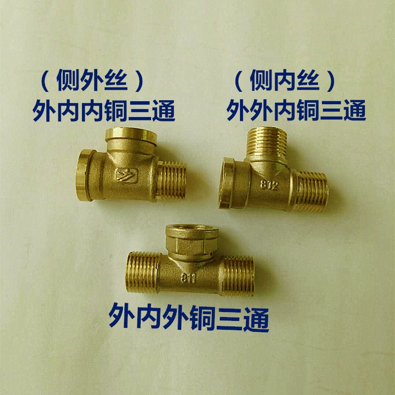Suitable 4 points thick copper tee joint inner and outer wire threaded gas pipe water heater water pipe fittings factory direct sales