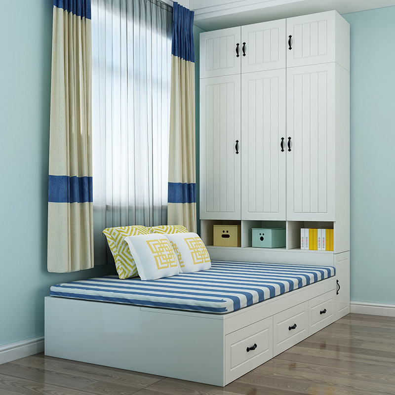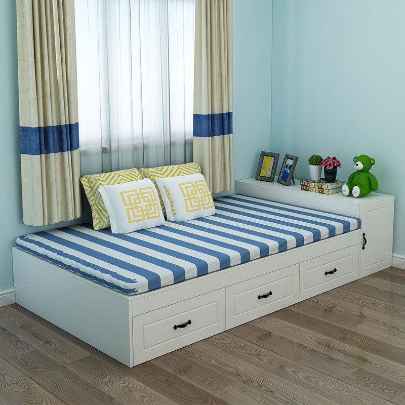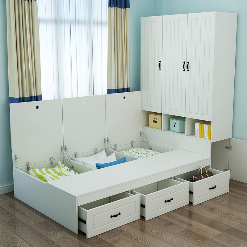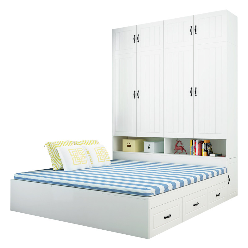 Small apartment single double bed modern simple plate bed European tatami high box storage cabinet storage master bed