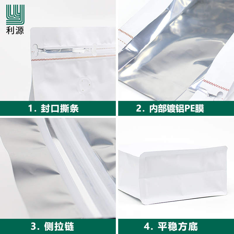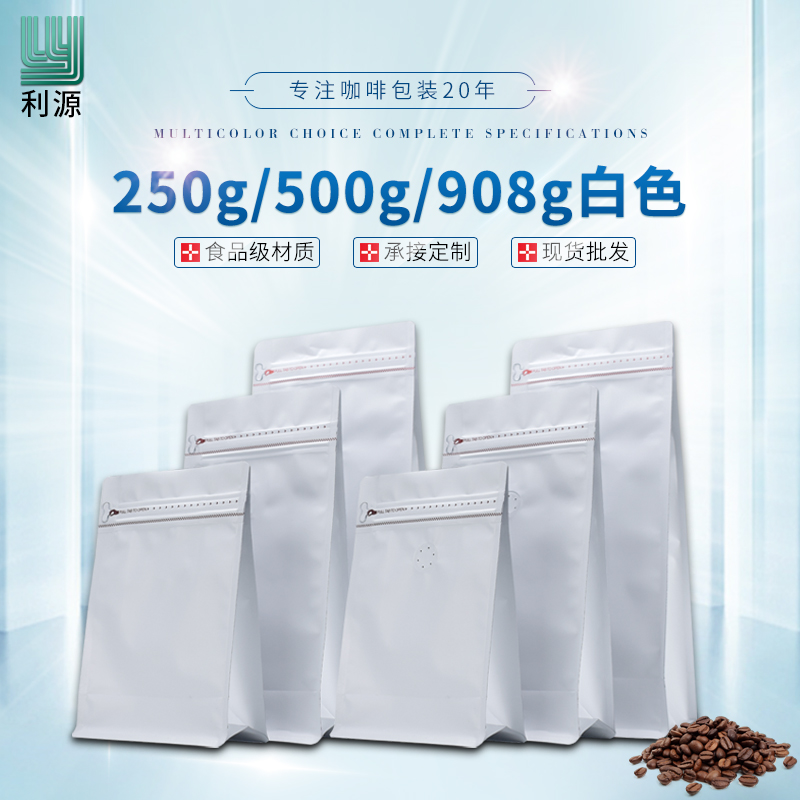 1 4lb Frosted White Eight-sided Seal with Valve 1 4lb Frosted White Eight-sided Seal without Valve Half pound Frosted White Eight-sided seal with valve Half pound Frosted White Eight-sided seal without valve One pound Frosted White Eight-sided seal with valve
