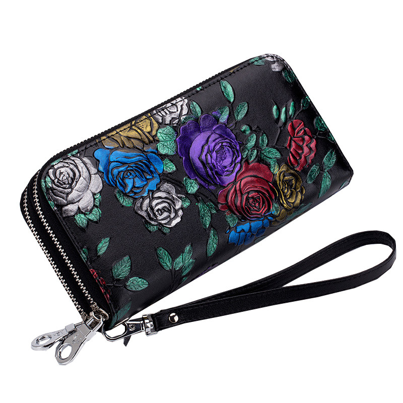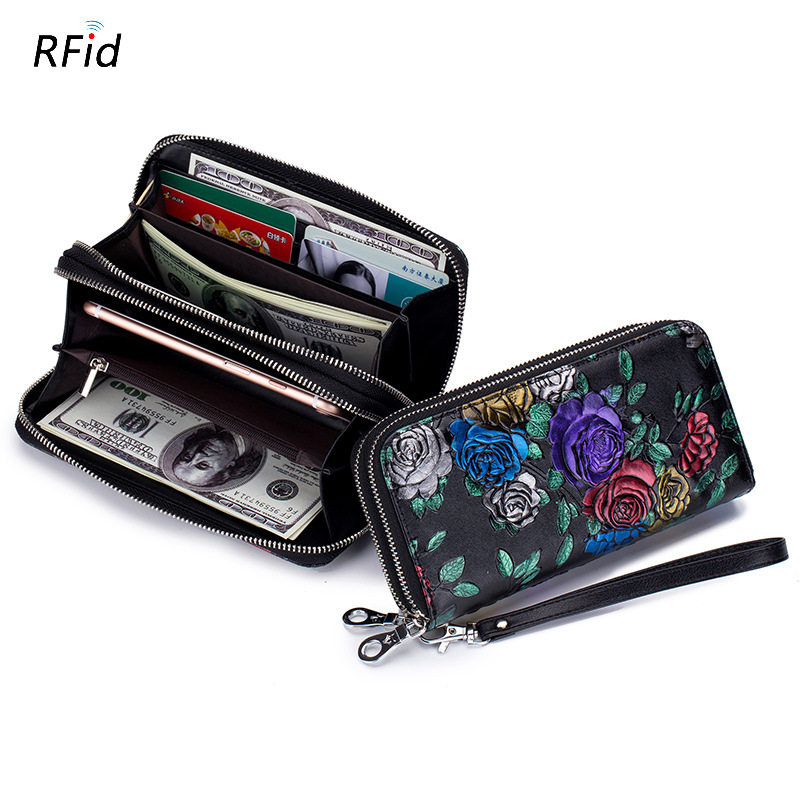 2022 New Lady Wallet Long Version Double Pull Chain Money Clip Genuine Leather Phone Bag Double Leather Wallet Large Capacity Hand Grab Bag