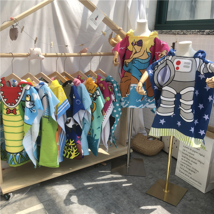 Summer Cartoon Children's Toilet Toilet Town with Hat Closet Boy and Girls Lovely Bathrobe Beach Towel Swimming Cover