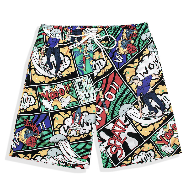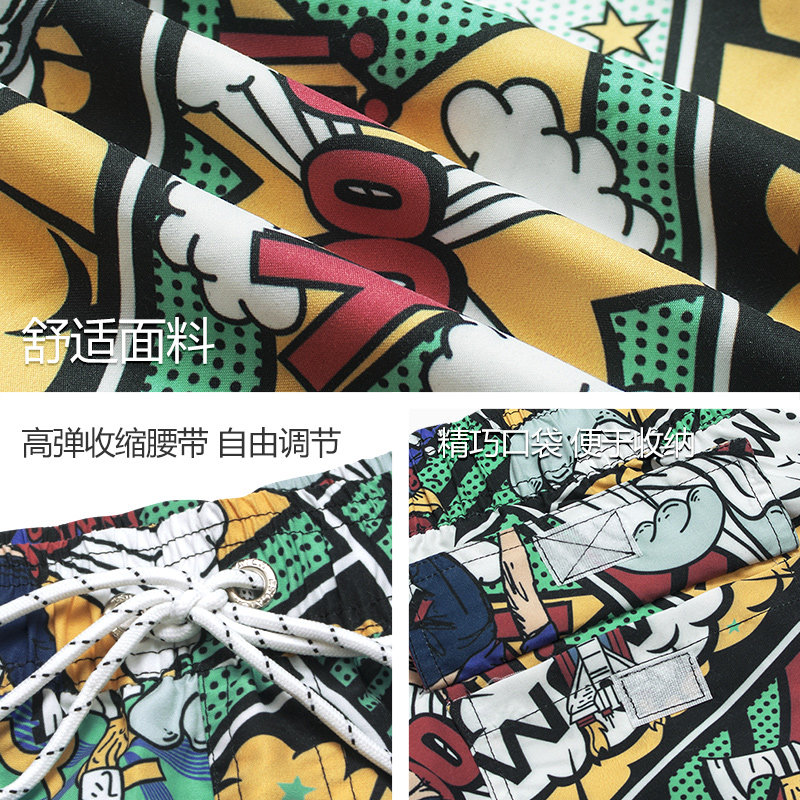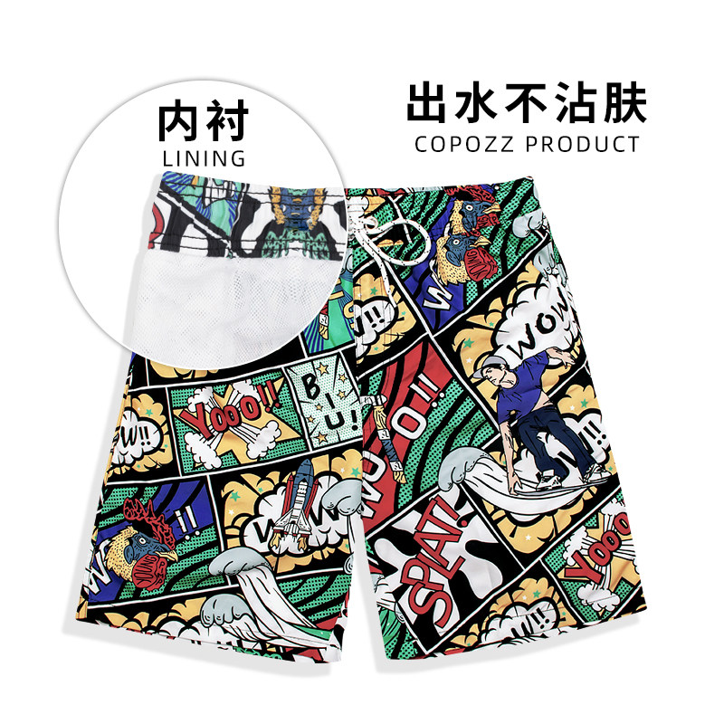 COPOZZ beach pants men's loose quick-drying swimming trunks vacation swimming leisure large size five-point color shorts slits vacation