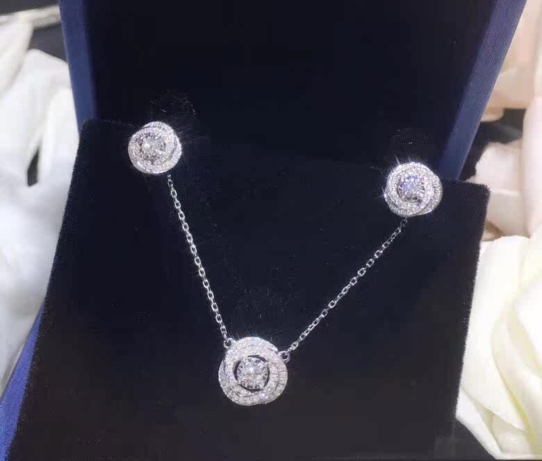 White 18K gold luxury group inlaid diamond pendant female natural real drill with diamond necklace
