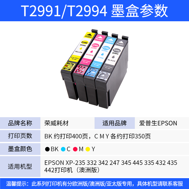T2991 BK Black Ink Cartridge (European Edition) T2992 C Cyan Ink Cartridge (European Edition) T2993 M Red Ink Cartridge (European Edition) T2994