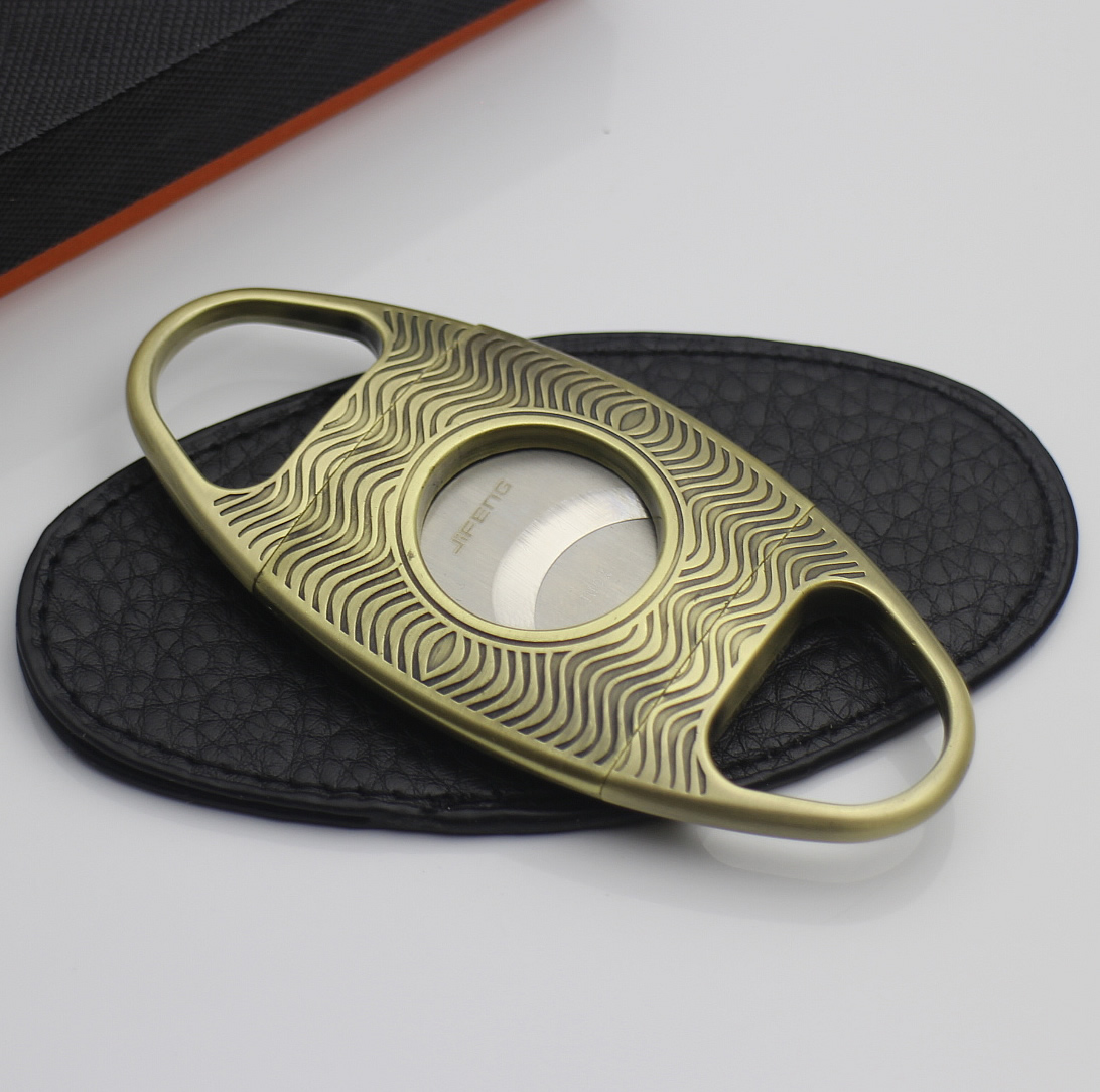 Monsoon JifENG cigar cut cigar knife portable double edge metal stainless steel blade practical delivery leather cover