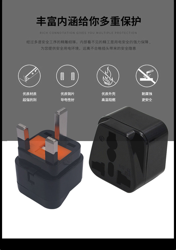 English Gauge Conversion Plug with insurance tube UK Singapore Malaysia Hong Kong Power conversion plug