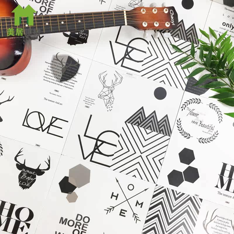 Minimalist Nordic Wind sleeve Department Black and white Gray English letter Ensemble Geometric Line Sleeve Ensemble small clear new set of style mix can't pick up