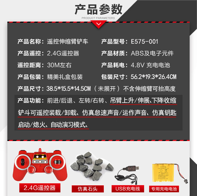 Oversized wireless remote control bulldozer stacker strange hand boy charging dynamic simulation engineering car model children's toy