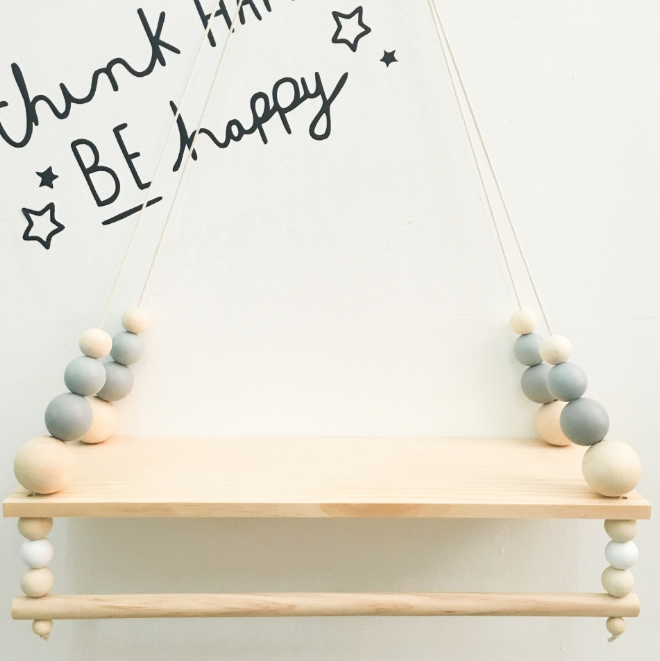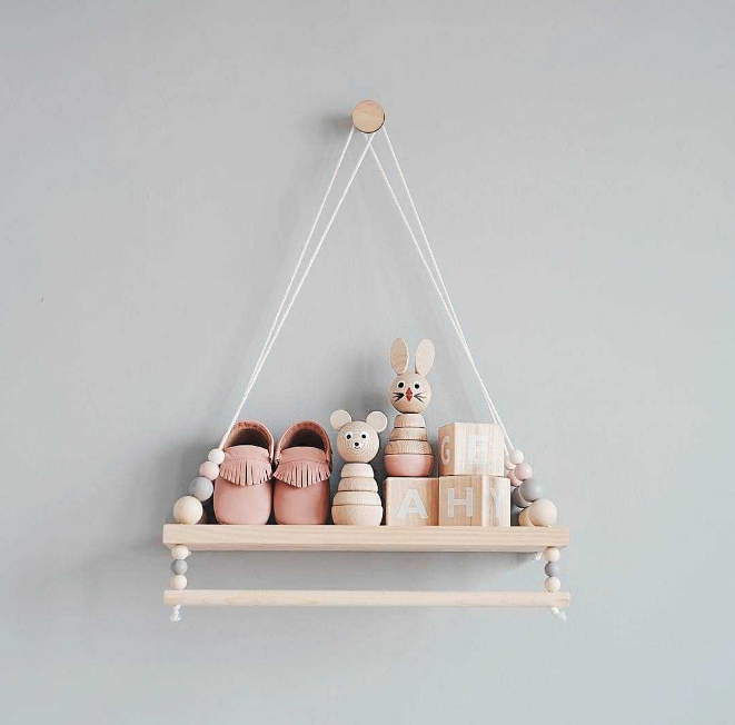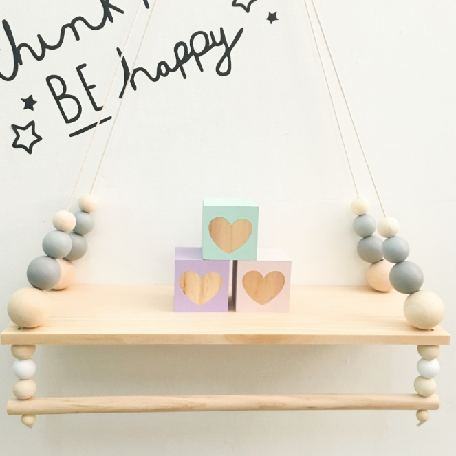 INS Nordic high-end custom wooden bead double-layer gray log storage board children's room soft wall decoration photo props