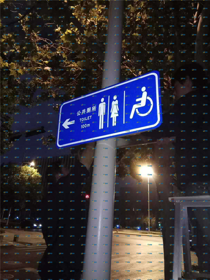 Public toilet sign Light pole hanging public toilet road sign Public powder room sign Public toilet sign