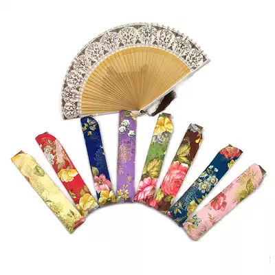 Chinese ancient style lady folding fan round mouth female fan cover double thick brocade 21cm female fan bag