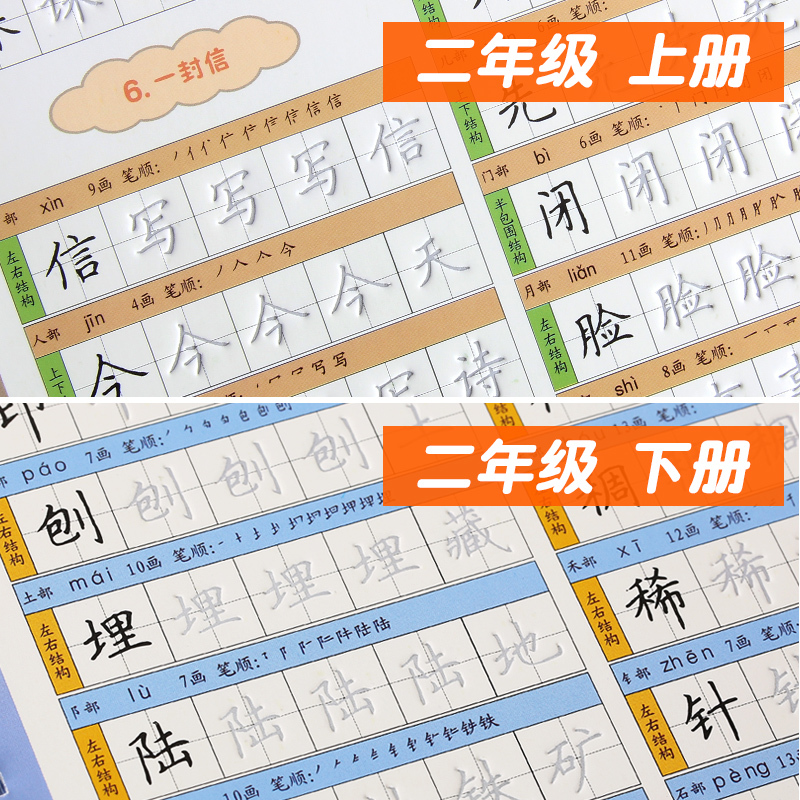 Primary school students 2nd grade Book of books Children's books Children's Education Edition 2021 Textbooks Language Sync Exercise Writing Words Letter Bench Block 3-6-year-old Digital pinyin Chinese Character Splitting Stroke Pen Cis-side Department