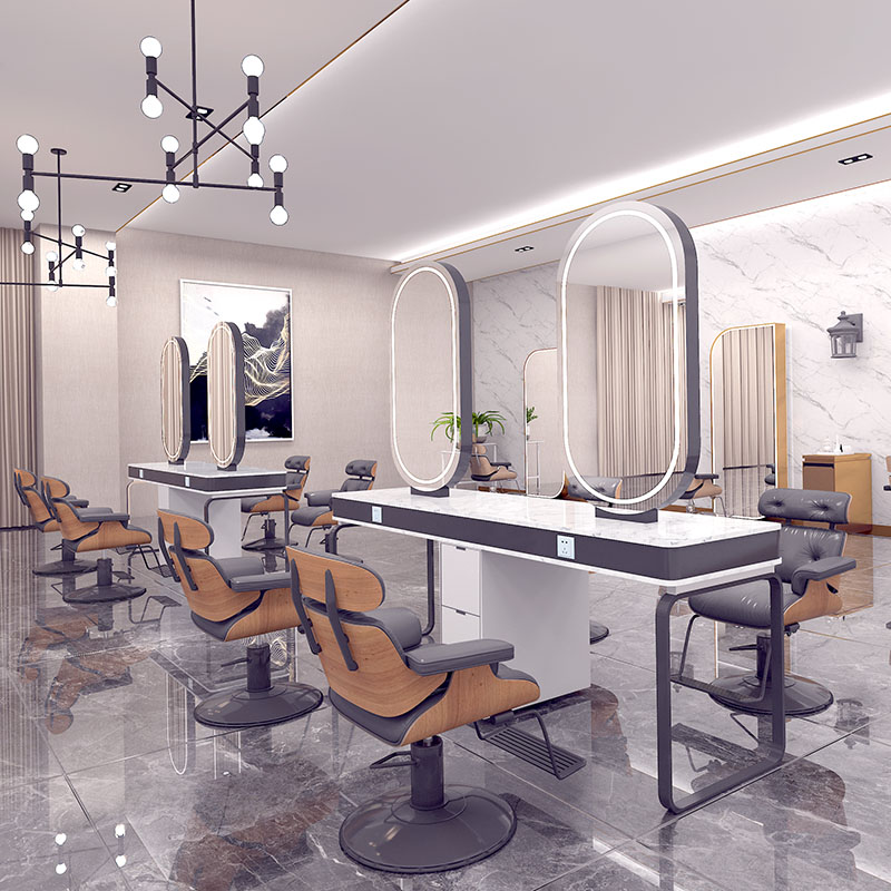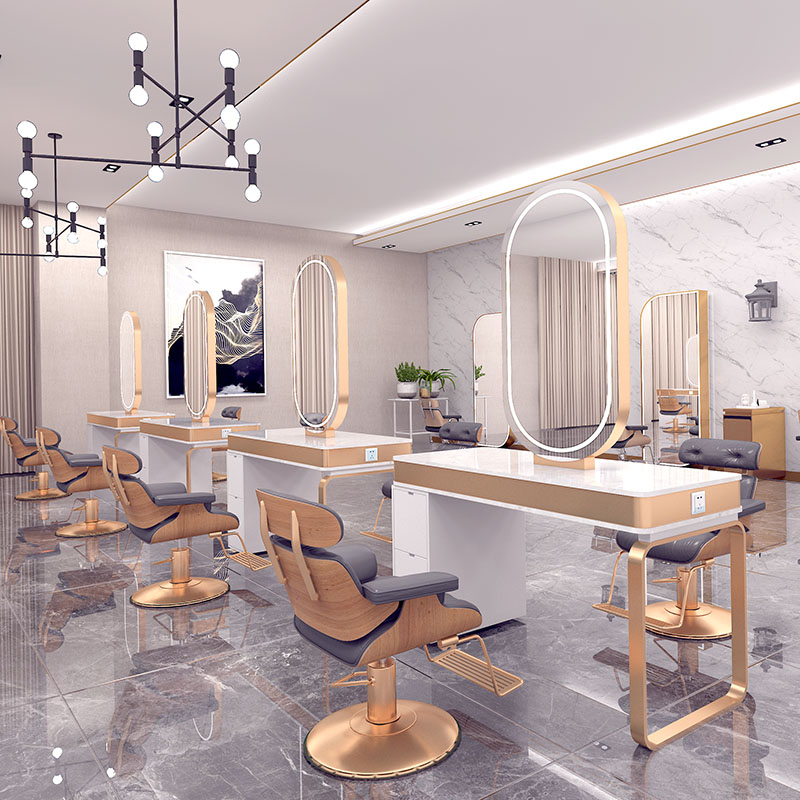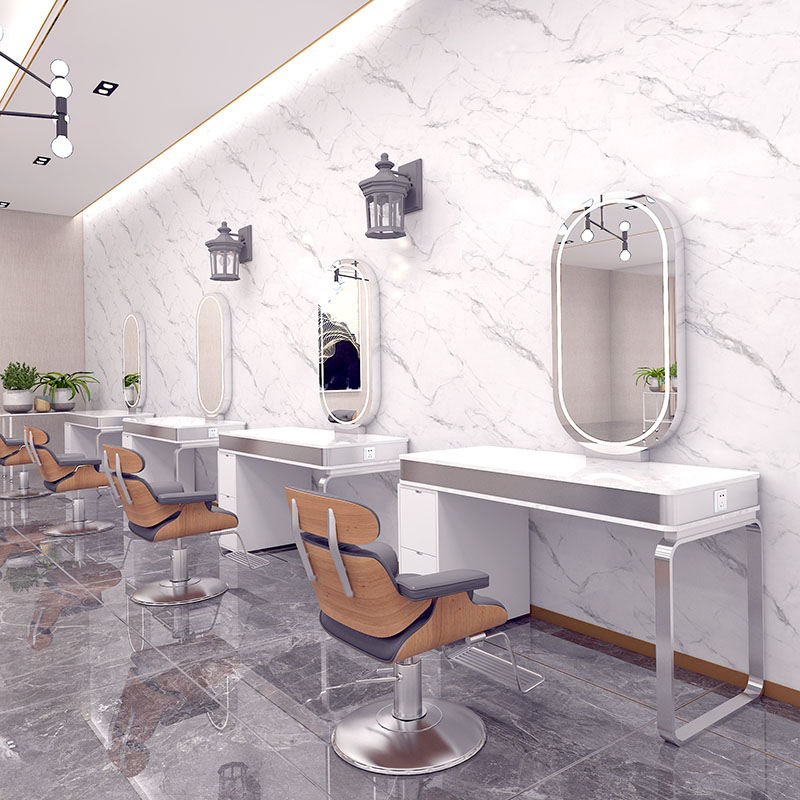 Jiahang marble stainless steel hairdressing mirror net red light luxury four-sided mirror barber shop perm dye hair salon double-sided hair cutting mirror