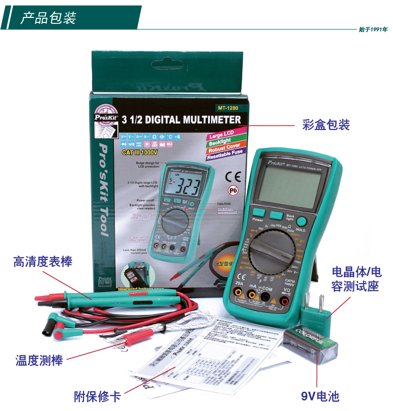 Taiwan Baogong Backlight Anti-burn Digital Display Universal Meter Electrician Digital Universal Meter High Precision Multimeter MT-1280