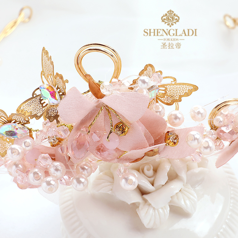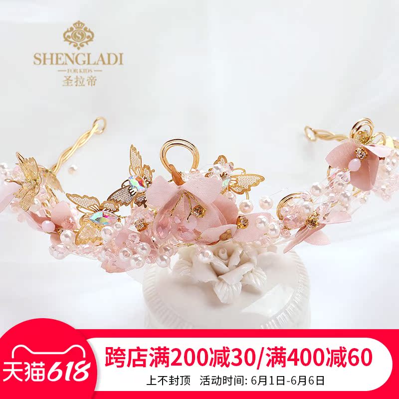 Children's crown headdress Princess Pink flower Fairy hair band Head flower Girl's hair ornaments Flower catwalk show ornaments