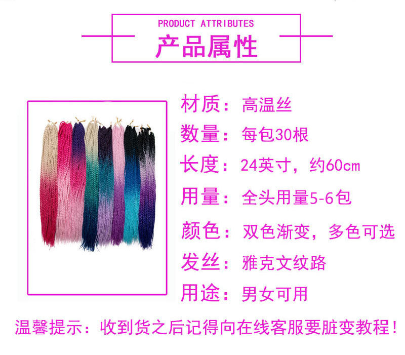 Wig Dirty Braid Female 2 strands choreography Tail Hair Ring with hair braid twist Bobraid Gradual Layer Color Small Braid 6 Pack Package