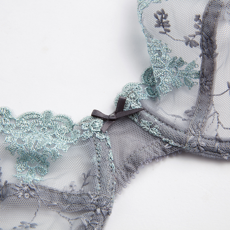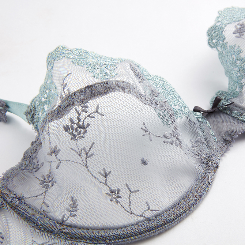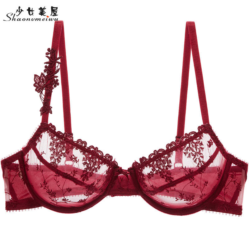 Ultra-thin sexy underwear embroidered lace little cute female bra with steel ring big chest show small size bra thin female