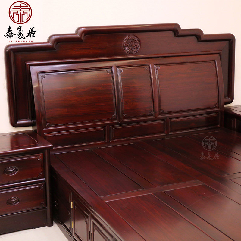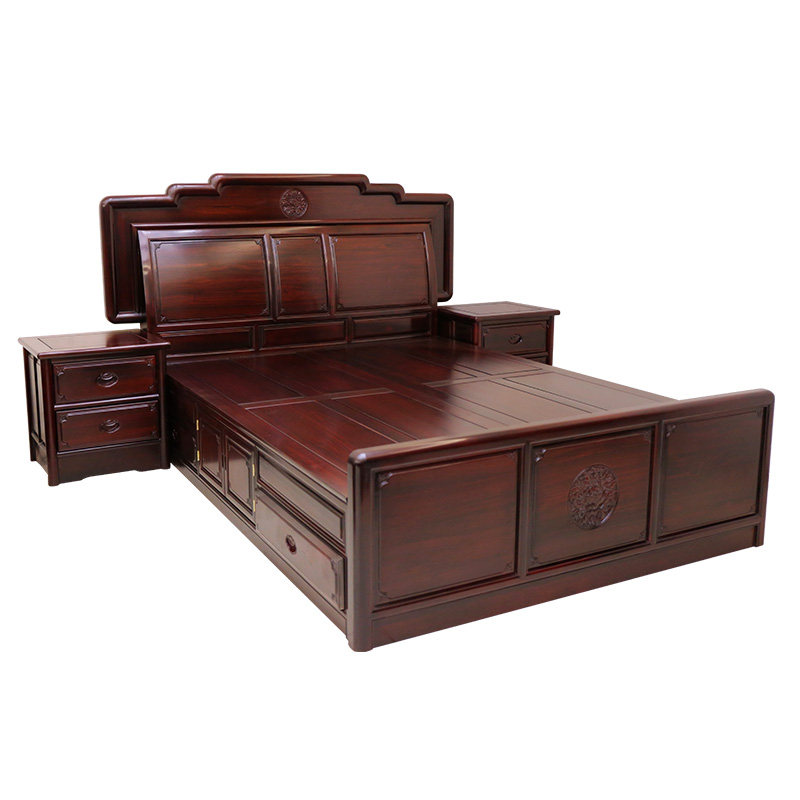 Mahogany bed solid wood bedroom bright and fresh Chinese style double bed high box storage storage antique South American sour branch wood bed