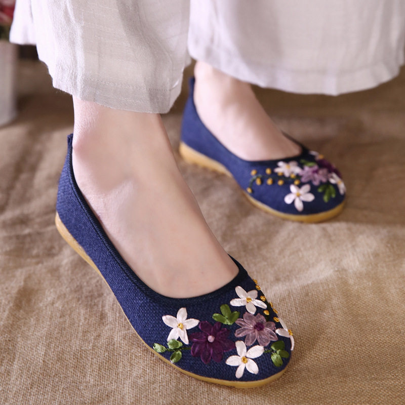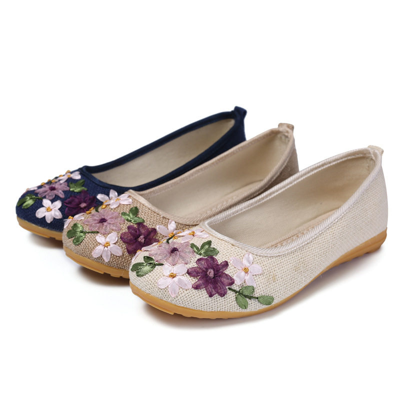 Big Family Show National Wind Embroidered China Wind Comeback Ancient Beijing Cloth Shoes Linen Brief Women's Single Dance Shoes