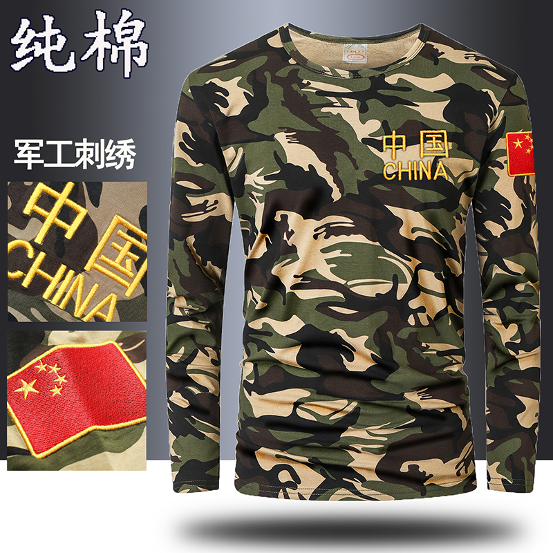 Pure cotton military uniform Men's military camouflage camouflage short-sleeved military training special forces top clothing Long-sleeved half-sleeve t-shirt
