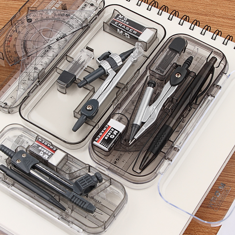 Morning light stationery compass set ruler for primary school students with multi-function drawing tool set Practical drawing drawing female middle school students Triangle ruler protractor 15cm straight plate set Transparent ruler free mail