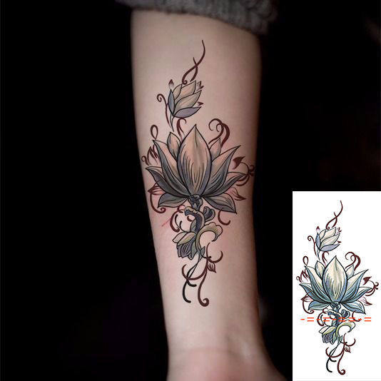 Retro lotus tattoo stickers durable waterproof arm flower arm back calf men and women simulation tattoo lotus tattoo stickers
