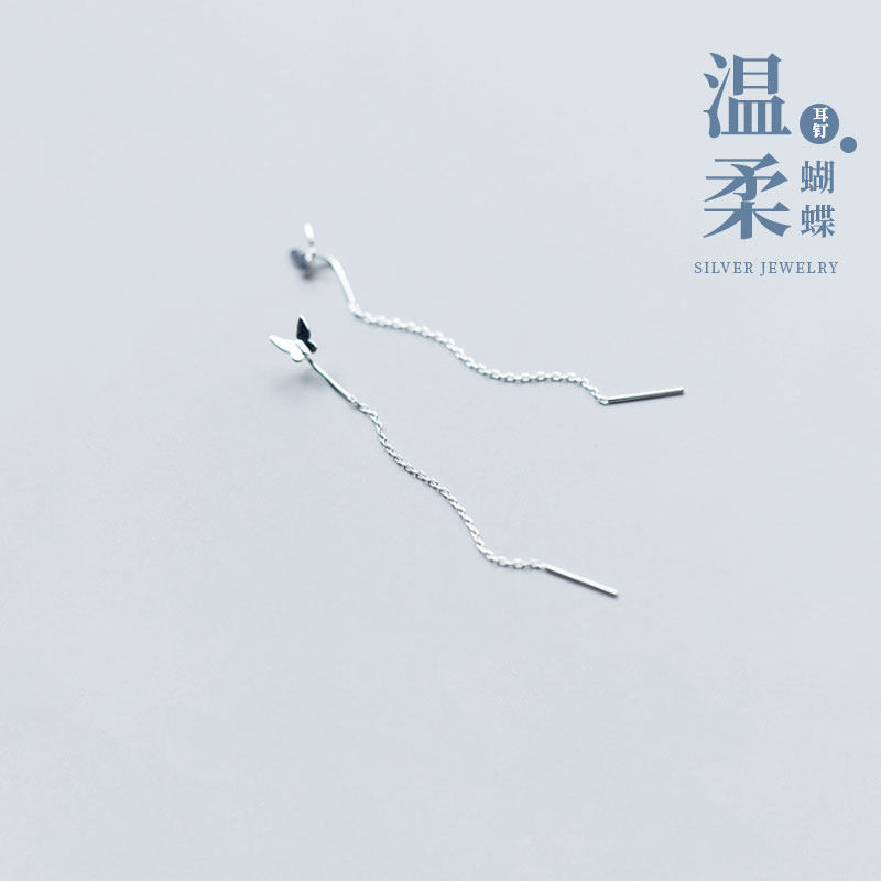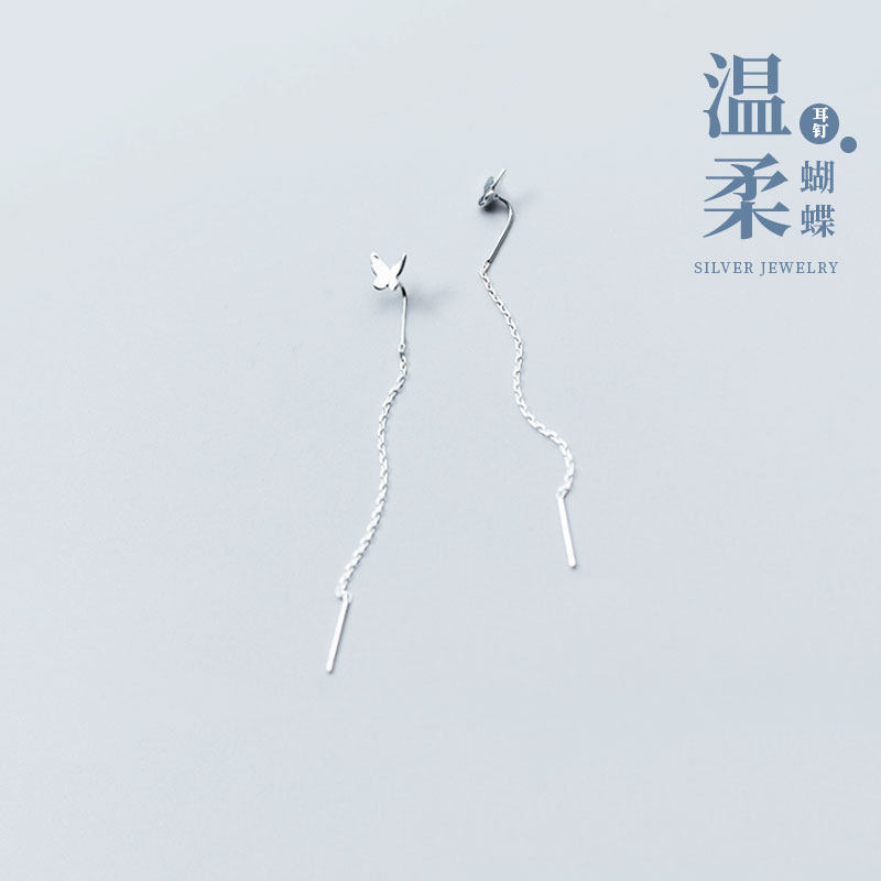 Cat sting wild mini butterfly S925 sterling silver ear nails women's Korean cute and sweet long small fresh ear line