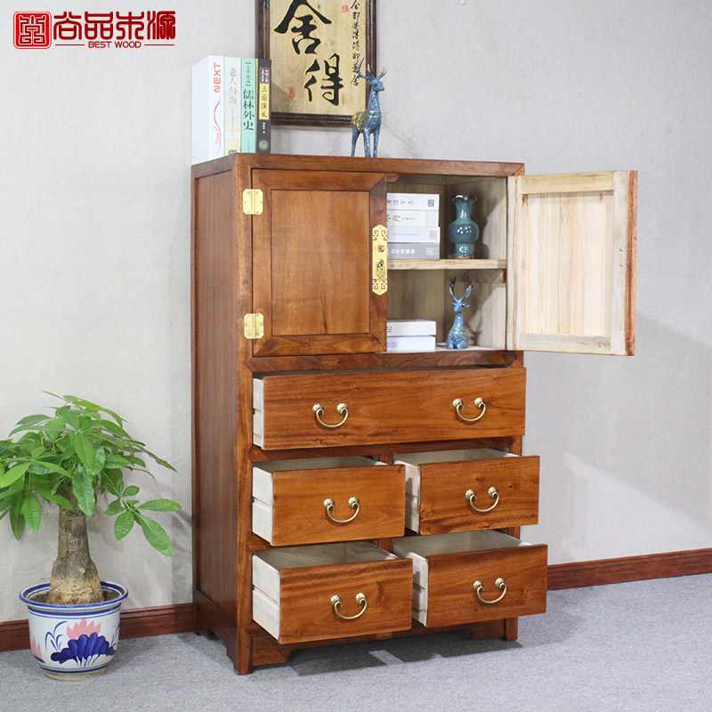 New Chinese Solid Wood Five-Closet Bedroom Cambridge Cabinet Modern Living Room Double Door Storage Locker