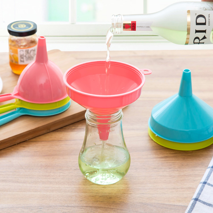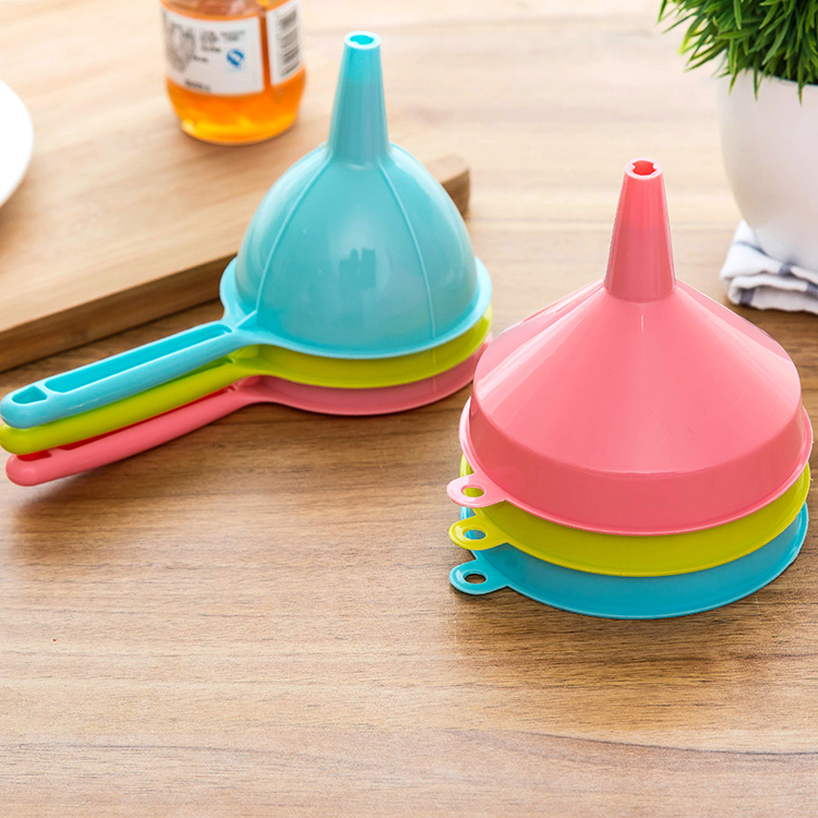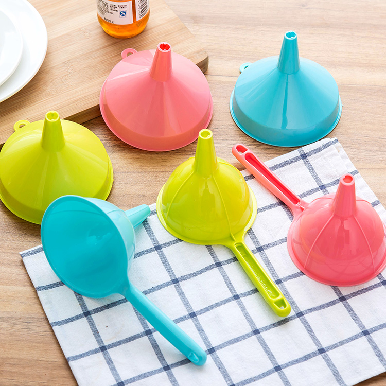 Colourful multi-purpose plastic funnel large long handle small kitchen soy wine pot liquid packaging tool