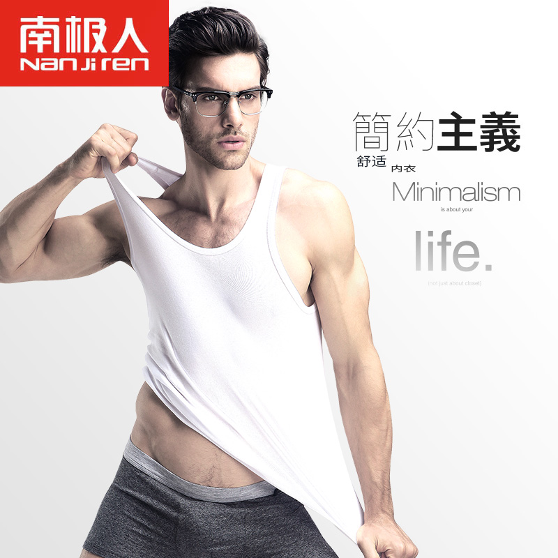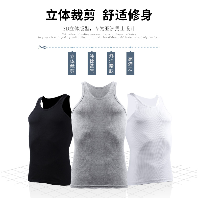 Antarctic men's 100% cotton Ribbed Vest Elastic Slim-fit Threaded Sports Bottoming Undershirt Sports Hurdle White
