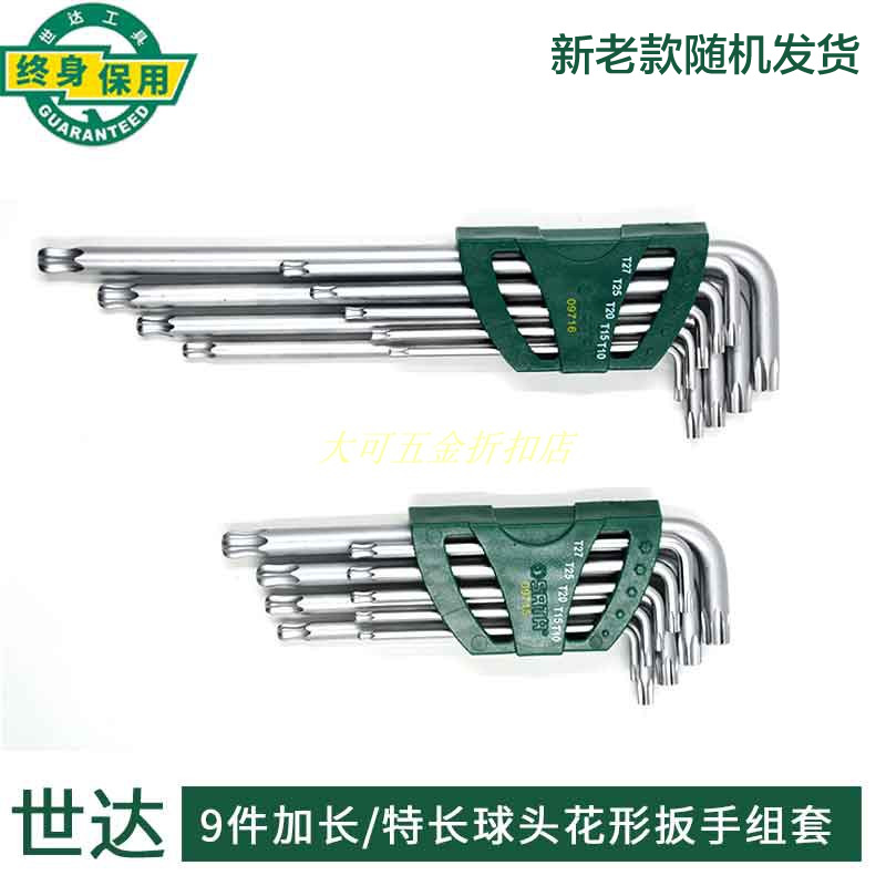 Seda 9 pieces lengthened special length ball head florid wrench set L shaped florid type inner hexagonal suit 09715 09716