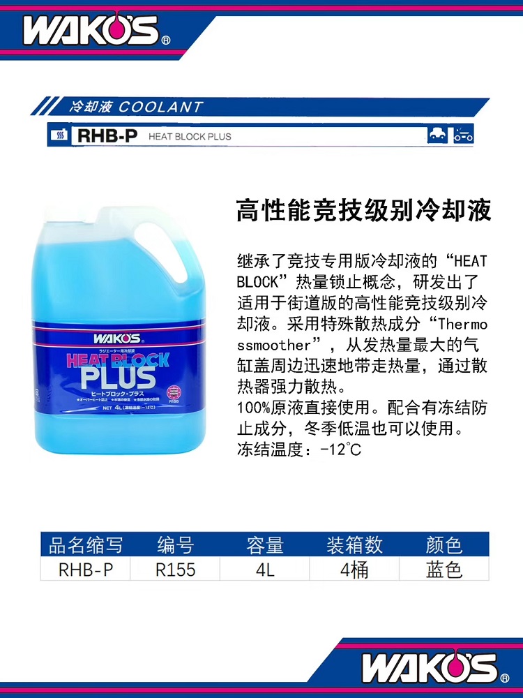 Japan imports and light WAKOS High performance automotive cooling liquid Anti-high temperature cooling liquid 4L for four seasons universal