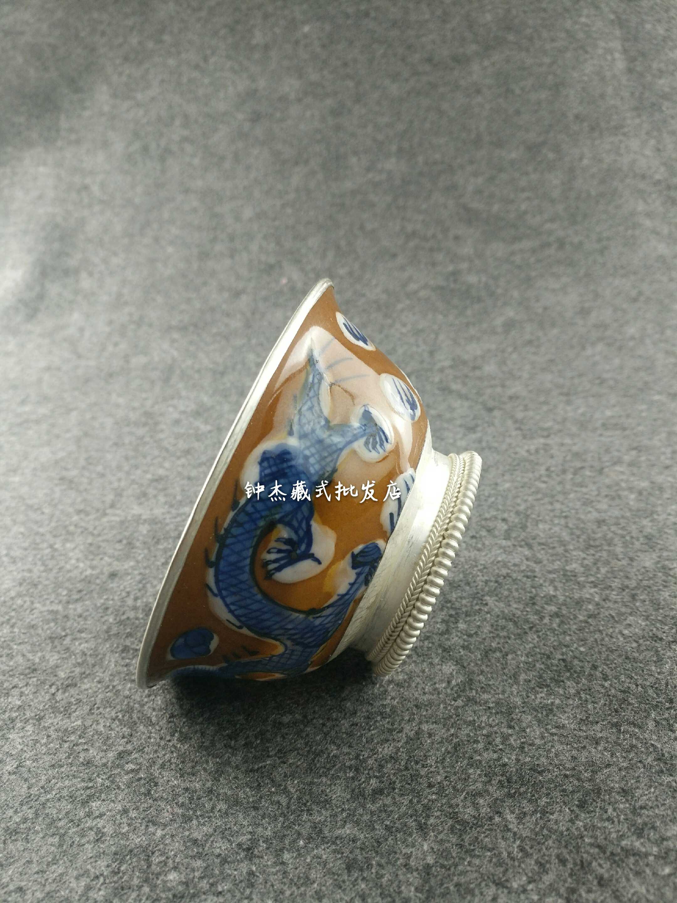 Tibetan butter tea bowl sterling silver bag ethnic characteristics filial piety to parents gift-giving temple living Buddha tsampa bowl sterling silver porcelain bowl
