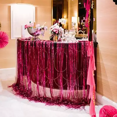 Tassel colored rain silk curtain Children's birthday party decoration jewelry Wedding room wedding pull flower color with background wall decoration