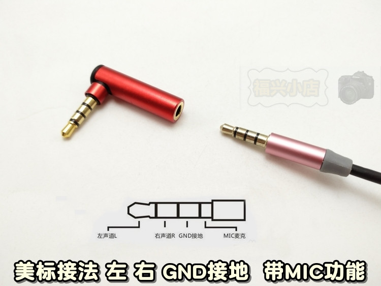 4-section headphone Straight head turning head Audio cable conversion head 4-section metal male-to-female protection head short-line L-shaped