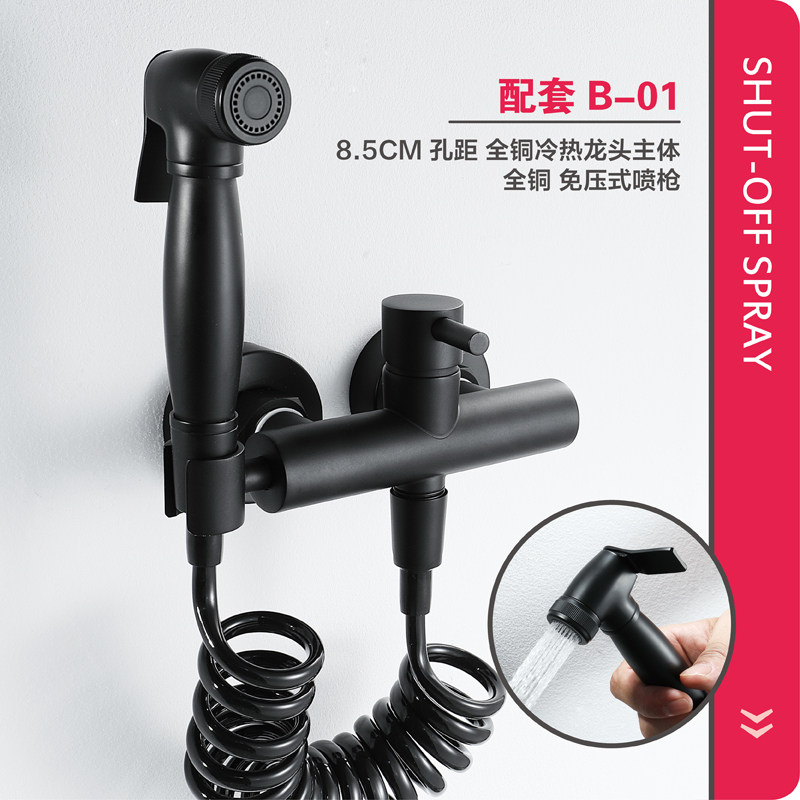Full copper hot and cold water washer for women's black toilet companion spray gun set to wash ass women's vaginal private parts washer